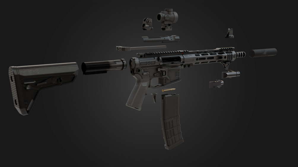 3D model of AR15 Assault rifle with 4k textures in FBX and OBJ formats.