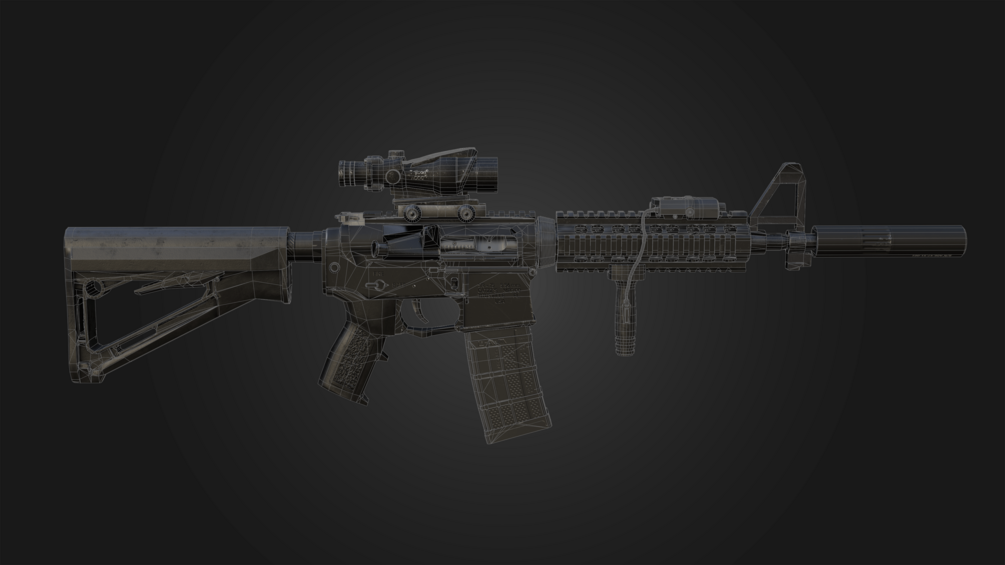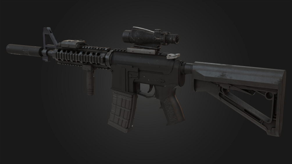 3D model of M4A1 Assault rifle with 4k textures in FBX and OBJ formats.