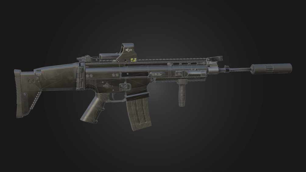 3D model of Scar-L Assault Rifle with 4k textures in FBX and OBJ formats.