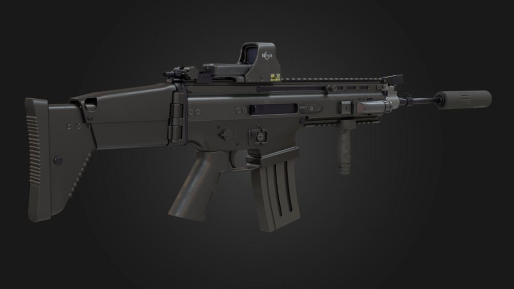 3D model of Scar-L Assault Rifle with 4k textures in FBX and OBJ formats.